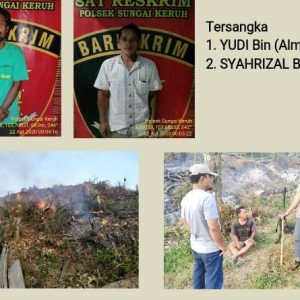 Sambungnya, dari informasi masyarakat tentang pembakaran lahan. kemudian Kapolsek memerintahkan Kanit Reskrim untuk mengecek titik hotspot tersebut di lokasi yang didapati, dalam pengecekan tersebut bahwa memang benar kedua tersangka sedang melakukan kegiatan pembakaran lahan yang dilakukan oleh keduanya. Sehingga langsung mengamankan barang bukti yang dijadikan untuk membakar lahan tersebut.
