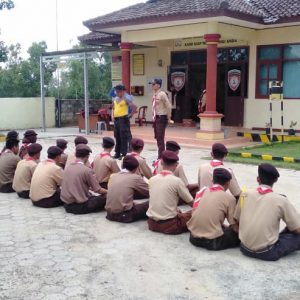 Anggota Pramuka dari Kwartir Ranting Lambu Kibang dan Way Kenanga yang tergabung dalam Saka Bhayangkara mengikuti Giat Rutin Pembekalan, di Mapolsek Lambu Kibang, Tiyuh Kibang Budi Jaya, Minggu (23/02).