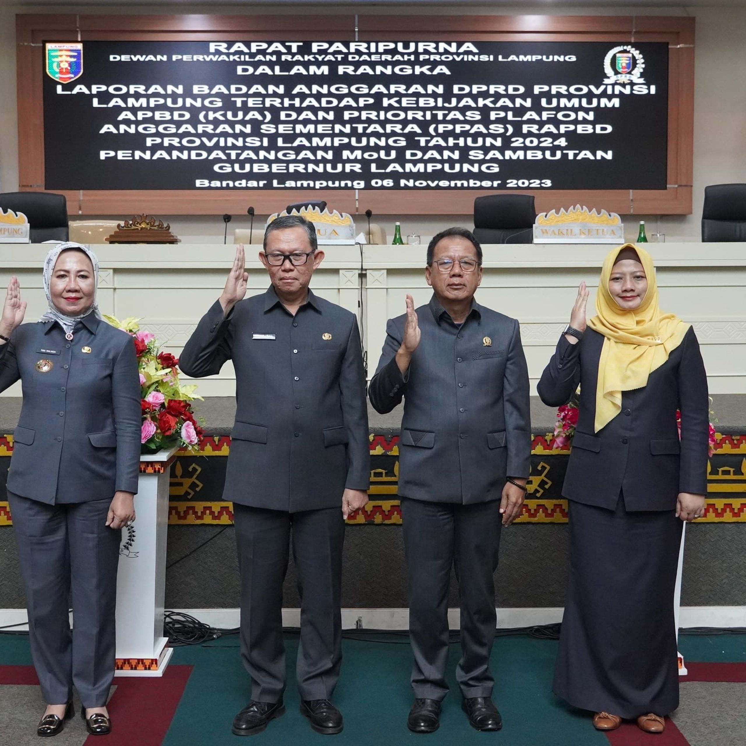 Gubernur Lampung dalam sambutan tertulis yang dibacakan oleh Sekdaprov mengatakan bahwa paripurna ini merupakan tahap lanjutan dari pembahasan antara Pemerintah Daerah dan DPRD dalam memformulasikan Kebijakan Umum APBD; serta prioritas program/kegiatan pembangunan daerah yang akan menjadi bagian dalam menyusun Rancangan Peraturan Daerah tentang APBD Provinsi Lampung Tahun Anggaran 2024.