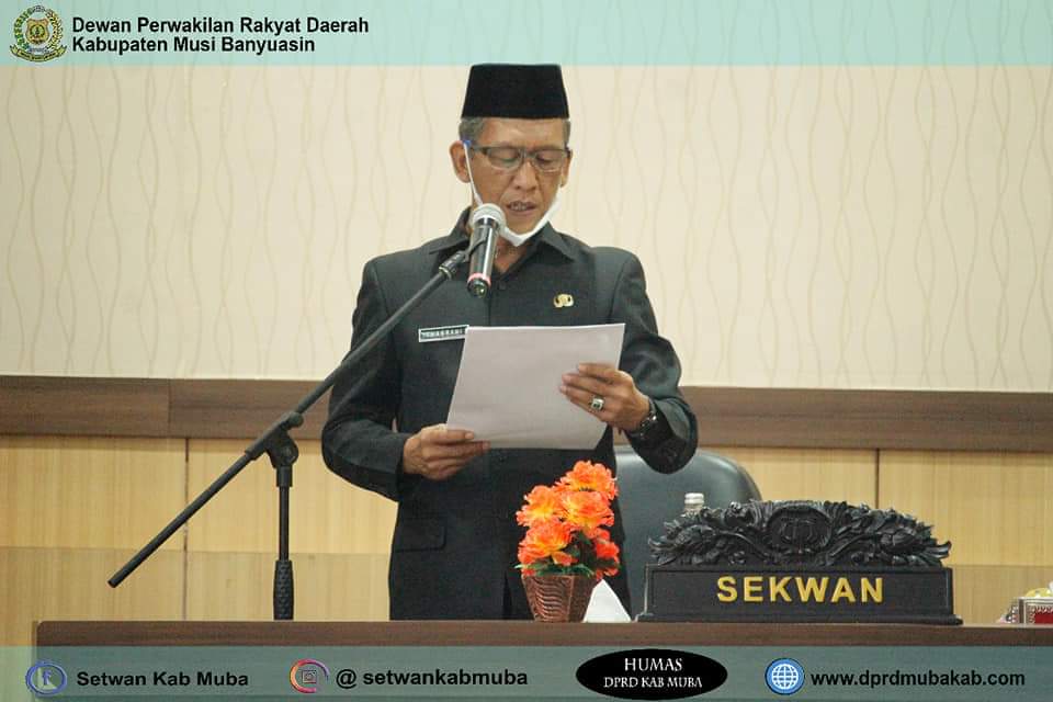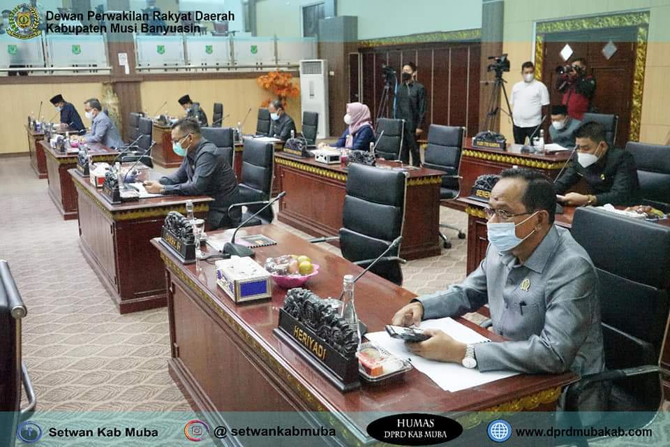 Rapat dipimpin oleh Wakil Ketua III DPRD H. Rabik Hs, SE.,SH.,MH dihadiri Wakil Ketua I DPRD Jon Kenedi, SIP.,M.Si, Wakil Ketua II DPRD Irwin Zulyani, SH, Anggota DPRD, Bupati Muba Dr. H. Dodi Reza Alex Noerdin, Lic Econ MBA, Sekretaris Daerah Muba, Asisten Setda Muba, Sekretaris DPRD Muba, Polres Muba, Dandim 0401/Muba, Pengadilan Negeri Sekayu, Perangkat Daerah Muba dan Pihak terkait lainnya yang hadir secara Virtual.