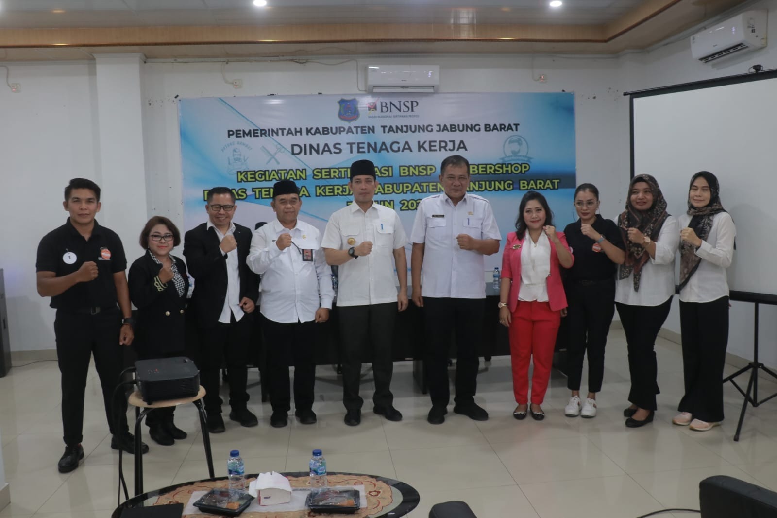 Sebelumnya, Kepala Dinas Tenaga Kerja Tanjab Barat, Eko Suwelo dalam laporannya mengatakan tujuan pelaksanaan kegiatan uji kompetensi sertifikasi BNSP adalah untuk memperkuat pengakuan profesional pangkas rambut serta untuk menunjukkan komitmen peserta terhadap standar kompetensi yang tinggi.