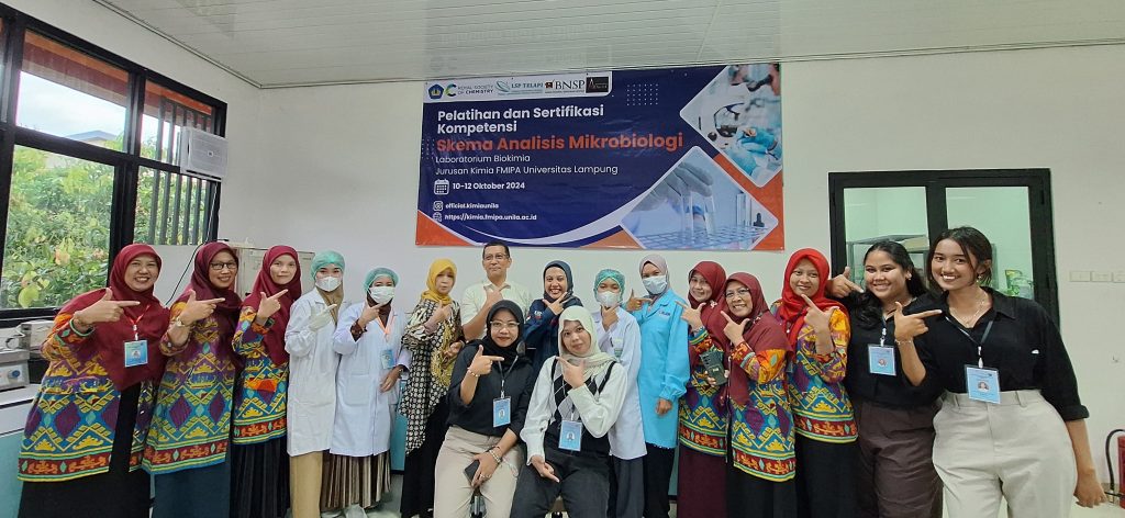 Jurusan Kimia FMIPA Universitas Lampung (Unila) menggelar pelatihan berbasis kompetensi pada skema Analisis Spektrofotometri UV-Vis dan Analisis Mikrobiologi, pada 10-11 Oktober 2024.