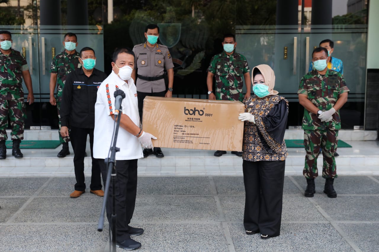 “Bantuan APD ini akan diberikan kepada Kadis Kesehatan dan Direktur Rumah Sakit Se-Provinsi Lampung untuk dibagikan ke tenaga medis,” jelasnya.