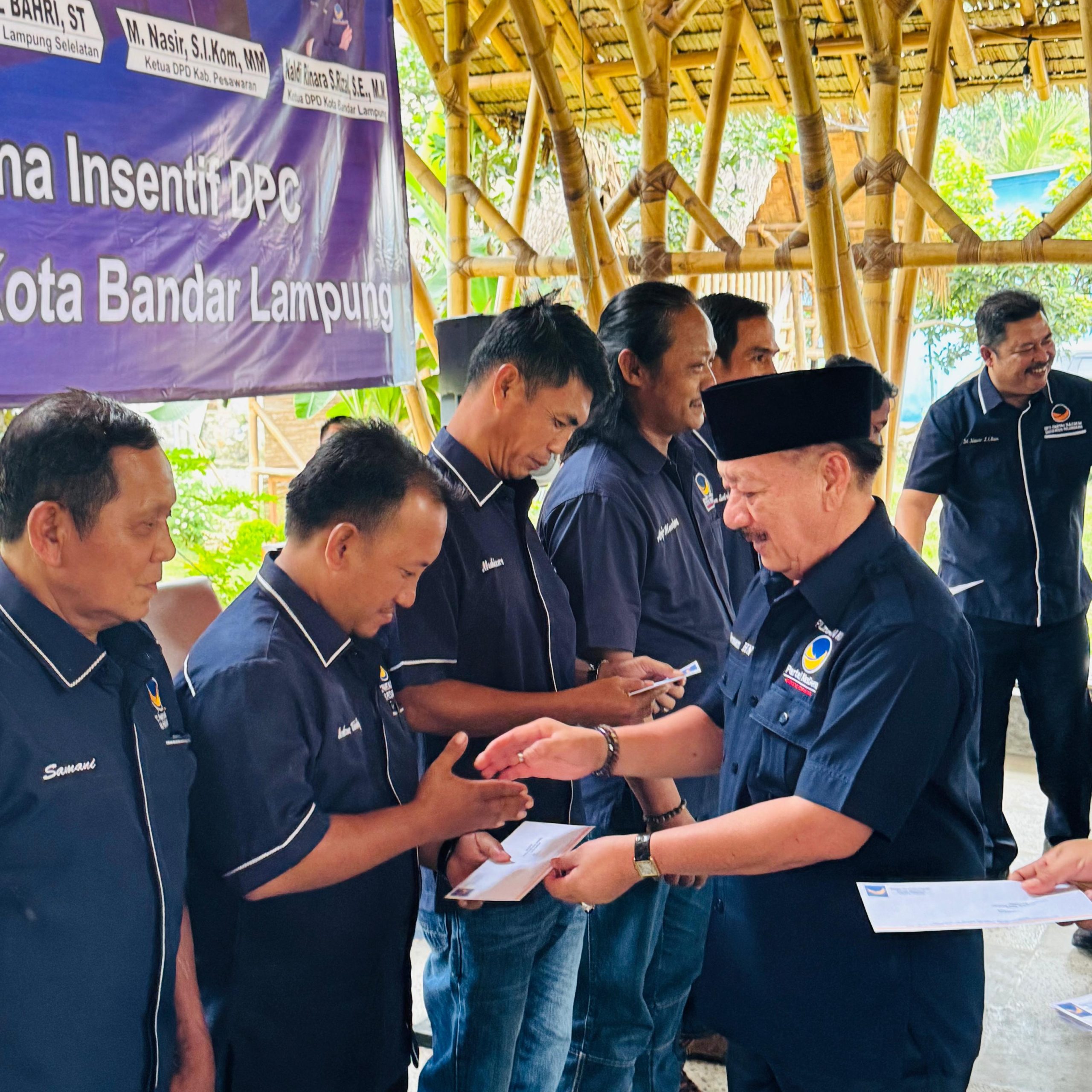 Penyerahan insentif kepada DPC Partai NasDem itu dipusatkan di Taman Kelinci Jaya Taruna Desa Merak Batin Kecamatan Natar, Lampung Selatan, Jumat 15 Agustus 2025. Dimana, bantuan tersebut diserahkan langsung oleh Ketua DPW Partai NasDem Lampung, Herman HN.