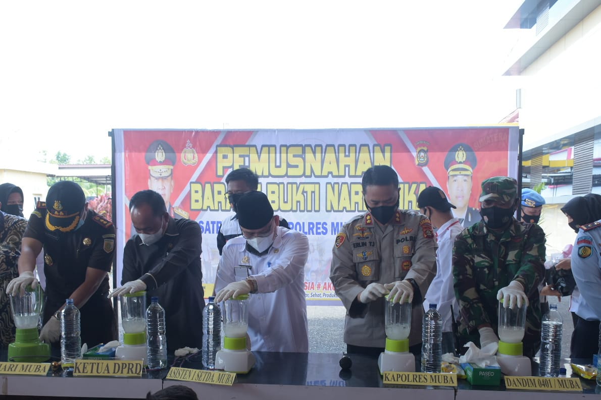 “Saya mengucapkan rasa terima kasih dan apresiasi yang setinggi-tingginya kepada semua pihak yang telah berusaha keras dalam memberantas peredaran narkoba di Kabupaten Musi Banyuasin,”ungkapnya.