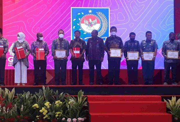 Penghargaan tersebut diserahkan Wakil Menteri Dalam Negeri (Wamendagri) John Wempi Wetipo dan diterima Asisten Pemerintahan dan Kesra Pemprov Lampung, Qodratul Ikhwan dalam acara Rapat Koordinas Nasional Kebijakan Toponimi dan Batas Daerah, di Jakarta (Kamis (10/11/2022).