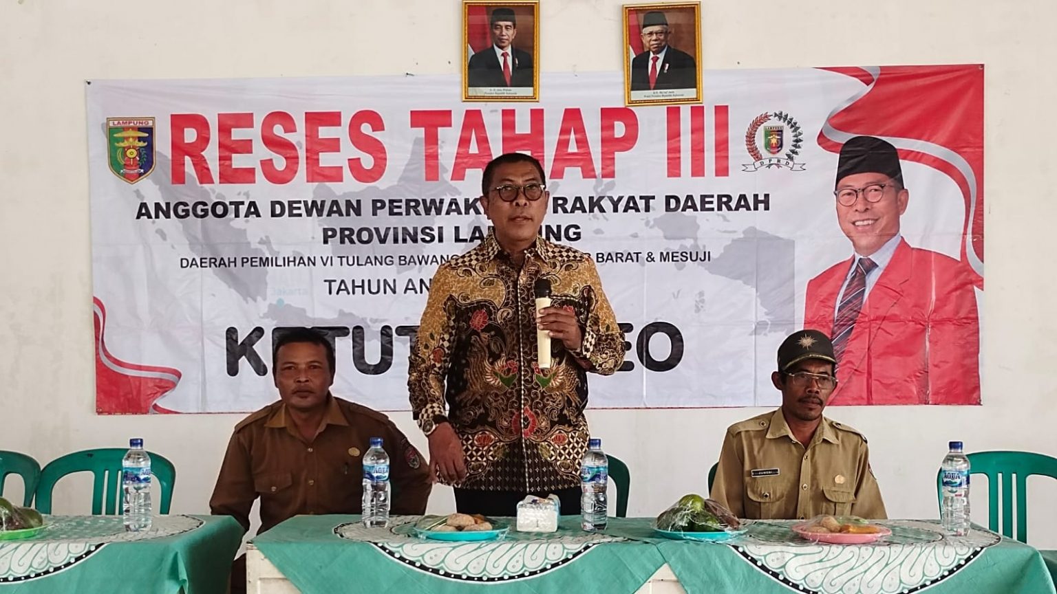 TULANG BAWANG BARAT : Anggota DPRD Provinsi Lampung Ketut Rameo menggelar kegiatan reses tahap III pada tahun 2023, reses di lakukan oleh seluruh wakil rakyat di daerah pemilihan nya mulai tanggal 31 Agustus 2023 sampai 7 September 2023.