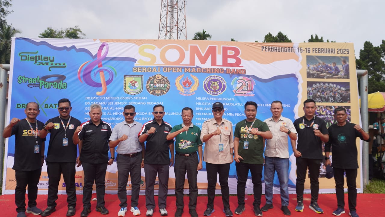 Bupati Serdang Bedagai (Sergai) H Darma Wijaya diwakili Staf Ahli Bupati Bidang Pemerintahan, Hukum dan Politik, Drs Zulfikar membuka kejuaraan Sergai Open Marching Band (SOMB) tahun 2025 di Lapangan Segi Tiga, Kecamatan Perbaungan, Sabtu (15/2/2025) pagi.