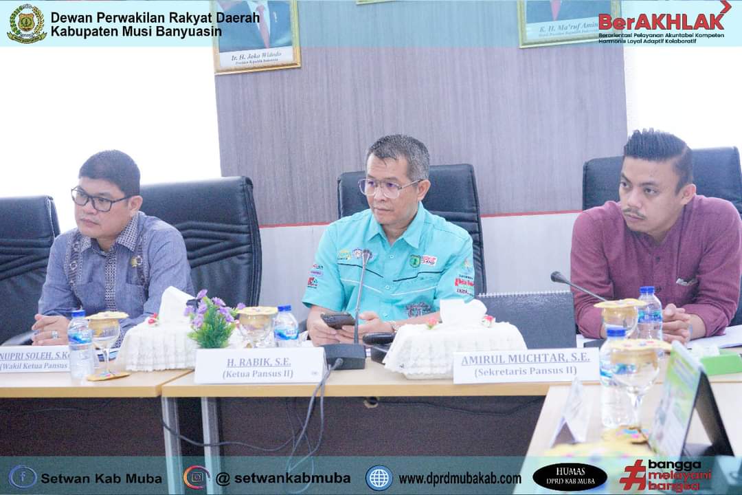 Rapat dipimpin oleh H. Rabik, SE Ketua Pansus II DPRD Muba, dihadiri Nupri Soleh, S.Kom Wakil Ketua Pansus II DPRD Muba, Amirul Muchtar, SE Pansus II DPRD Muba, Anggota Pansus II DPRD Nuti Romayana, S.Pdi, Jepri Yansyah, SH, Tim Ahli Pansus II DPRD,Dinas Perikanan Muba, Bagian Hukum Setda Muba, Kades Epil Kec. Lais, Kades Bandar Jaya Kec. Sekayu, Kades Rimba Ukur (C5), Kades Sungai Batang (C6), Kades Sungai Medak (C7), BPKAD Muba, Dinas Perkim Muba dan Dinas Pemberdayaan Masyarakat dan Desa Muba.