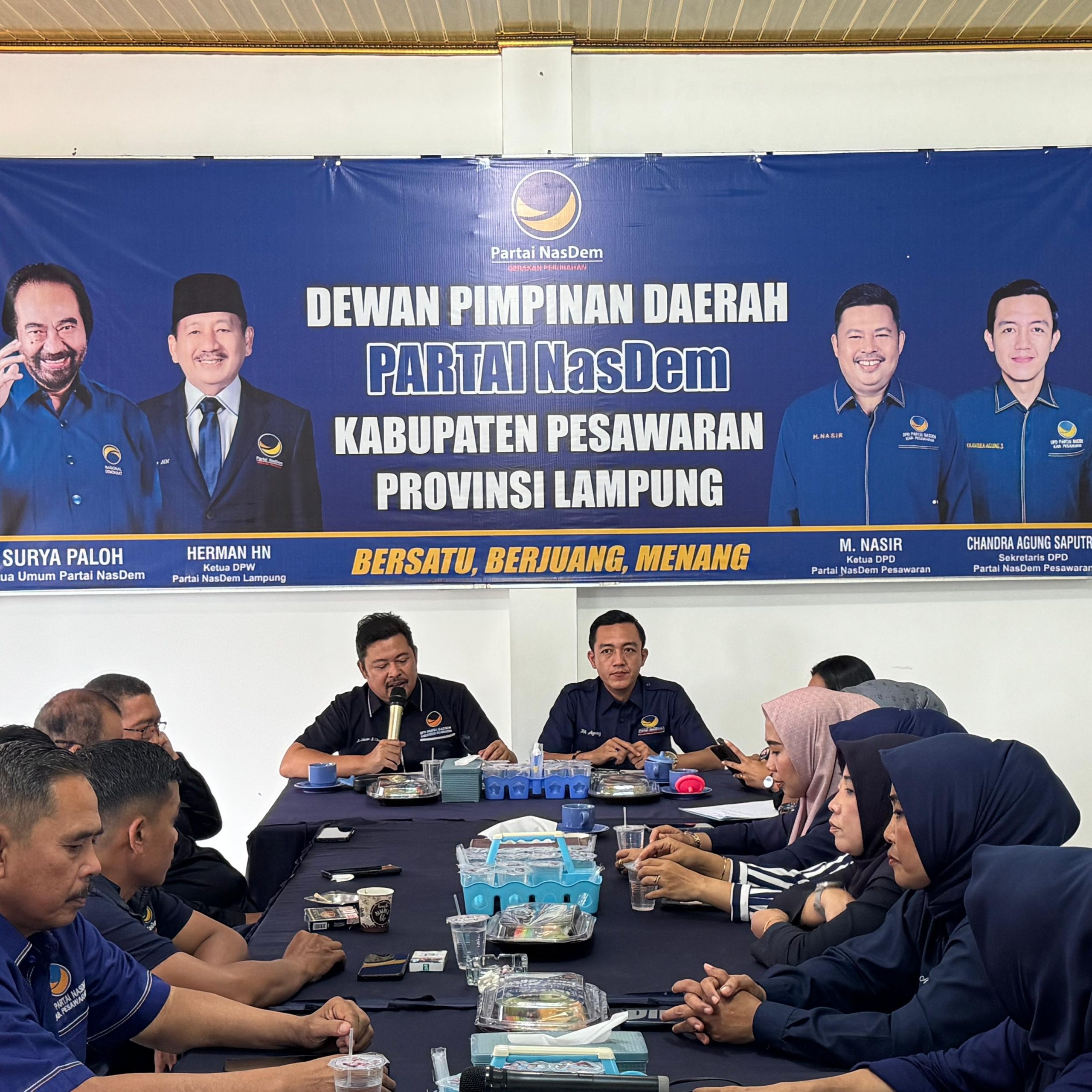 Pesawaran, sidakpost- Dewan Pimpinan Daerah Partai NasDem Kabupaten Pesawaran menggelar rapat koordinasi untuk menyikapi Pasca Putusan Mahkamah Konsitusi Republik Indonesia (MK RI) Yang mengabulkan Gugatan Permohonan Pasangan Calon Bupati Nomor urut 2 nanda Indira – Antonius pada Pemilihan Kepala Daerah (Pilkada) Pesawaran dengan nomor perkara 20/PHPU.BUP-XXIII/2025. Pada putusan akhir MK mendiskualifikasi Aries Sandi Darma Putra dan Memerintahkan untuk melakukan pemungutan suara ulang harus sudah selesai diselenggarakan dalam tenggang waktu 90 hari sejak putusan ini diucapkan Rakor ini di Pimpin Langsung Oleh Ketua DPD M. Nasir. Kamis (27/2/2025)
