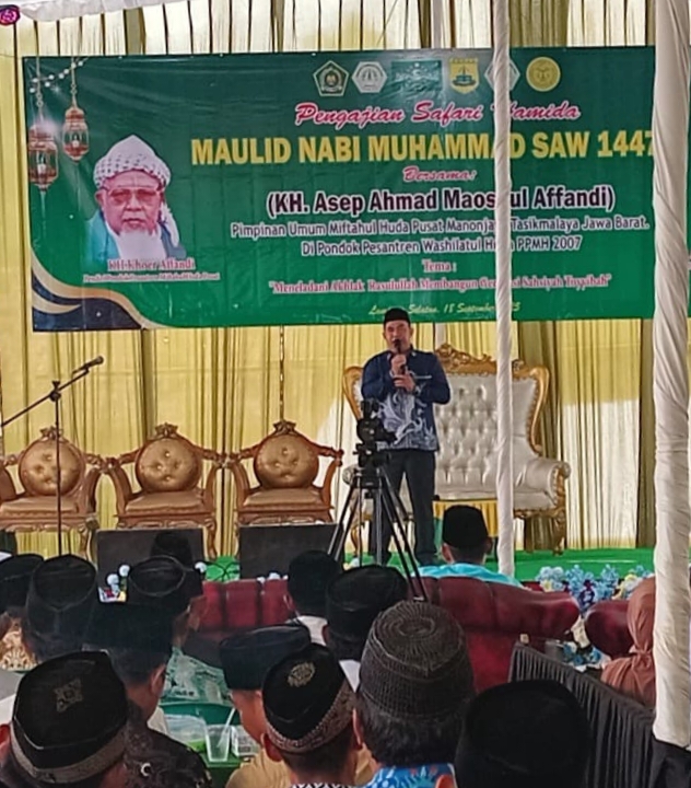 Sebagai kata pembuka kyai asep menyampaikan ucapan terima kasih kepada pimpinan pusat Miftahul huda beserta rombongan atas kehadirannya serta juga ucapan terima kasih kepada bupati yang hadir diwakili serta seluruh lapisan masyarakat yang turut meramaikan acara maulid ini. Kyai asep juga memberikan motivasi kepada generasi muda yang bersahsiyah toyyibah atau karakter yang baik .