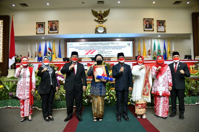 Lampung – Gubernur Lampung Arinal Djunaidi, mengikuti Rapat Paripurna DPRD Mendengarkan Pidato Kenegaraan Presiden RI Dalam Rangka Peringatan HUT Ke-77 Kemerdekaan RI Tahun 2022 secara Hybrid di Ruang Sidang DPRD Provinsi Lampung, Selasa (16/08/2022).