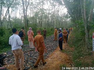 Usai melakukan pertemuan, para pejabat pemerintah ini, langsung meninjau lokasi pengerjaan jalan onderlagh yang dituding masyarakat tidak benar dalam pengerjaannya.