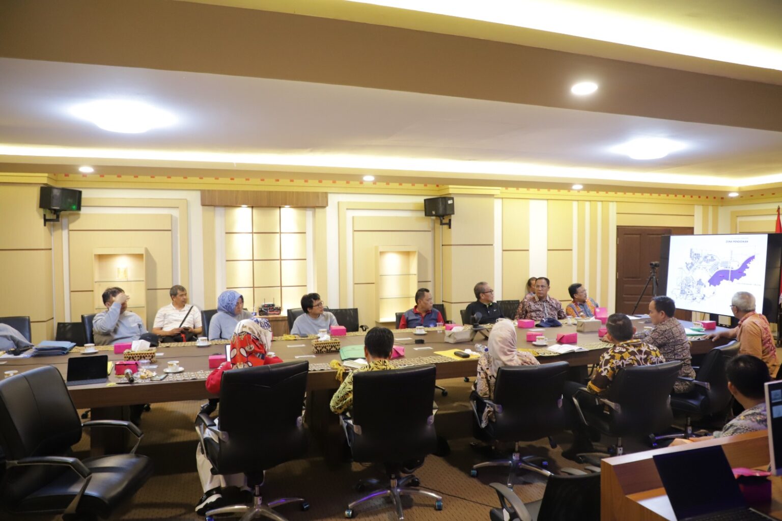 Dialog ini dihadiri Asisten II Bidang Perekonomian dan Pembangunan Pemprov Lampung Kusnardi, Kepala Bapedda Lampung Mulyadi Irsan, kepala Dinas Kesehatan, plt. kepala Dinas Pendidikan, kepala Dinas Kominfo, serta jajaran OPD dan Dekan FP Unila. Rapat terbatas ini berlangsung di ruang rapat pemprov Lampung lantai dua.