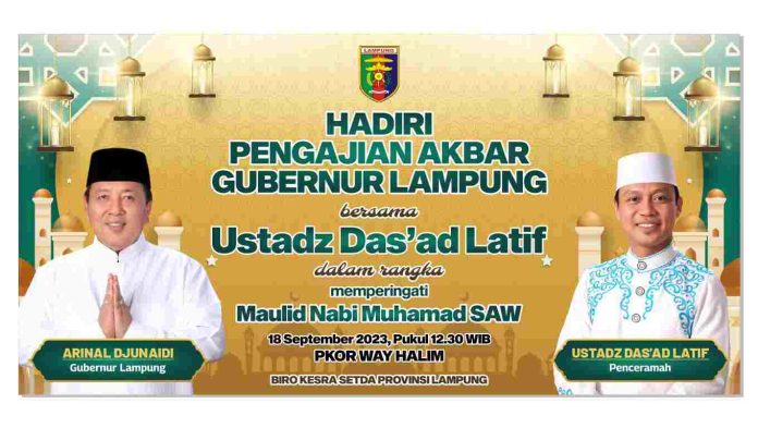 Pengajian Akbar yang akan di hadiri langsung Gubernur Lampung Arinal Djuniadi ini diharapkan akan menjadi salah satu momen penting dalam peringatan Maulid Nabi tahun ini. Warga di Lampung dan Bandar Lampung khususnya, diundang untuk meramaikan acara yang akan digelar di PKOR Way Halim, Bandar Lampung.