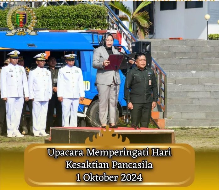 Bandar Lampung – Dalam rangka memperingati Hari Kesaktian Pancasila, Wakil Ketua Sementara DPRD Provinsi Lampung, Ibu Kostiana, SE., MH., bersama Anggota DPRD Provinsi Lampung, Ibu Budhi Condrowati, SE., mengikuti upacara resmi yang digelar pada Selasa, 1 Oktober 2024, di Lapangan Korpri, Kantor Gubernur Lampung.